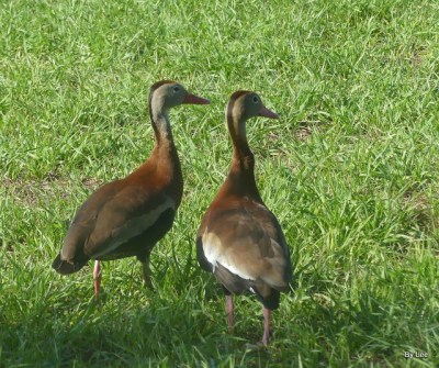 Yesterday we added a new bird to our backyard list. He tried to hide, but with a look like that, it’s hard to do. So finally, he came out of hiding. Some of those Whistling Ducks don’t seem to be too happy with him being there. [I was very happy! :) ]
