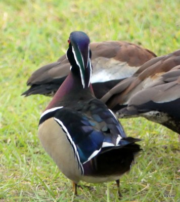 I have to admit that the Duck had a bit of an attitude. While he was strutting around, ever so often he would throw his head like he was trying to flip that long “bonnet” of his. [my term] I tried to capture it on video, but I was only able to capture it once.